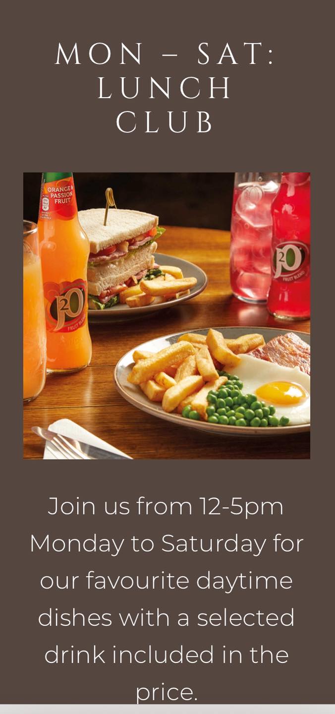 Lunch club! Join us between 12-5pm Monday-Saturday and enjoy our lunch club offer 🥪